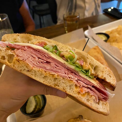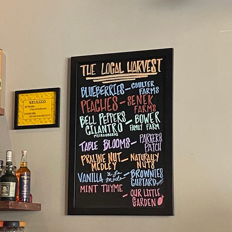 The menu features many products from local farms and businesses, including the blueberries from Coulter Farms in my Berries in Bloom gin cocktail and the peaches from Senek Farms in my Stonefruit Smash bourbon cocktail. The menu also features a delicious array of small plates and sandwiches, the standout being the Sharp Italian.